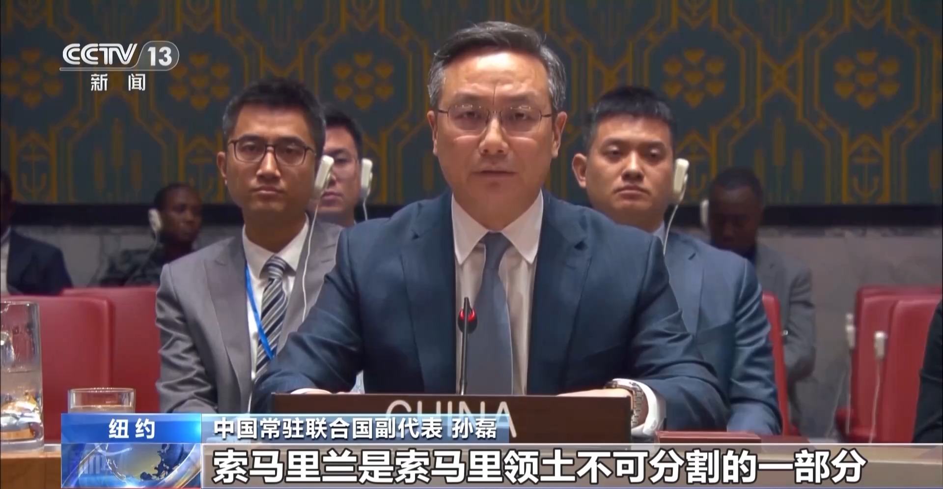 中国常驻联合国副代表孙磊:索马里兰是索马里领土不可分割的一部分,中方坚定支持索马里的主权、统一和领土完整,反对任何分裂索马里领土的行为。