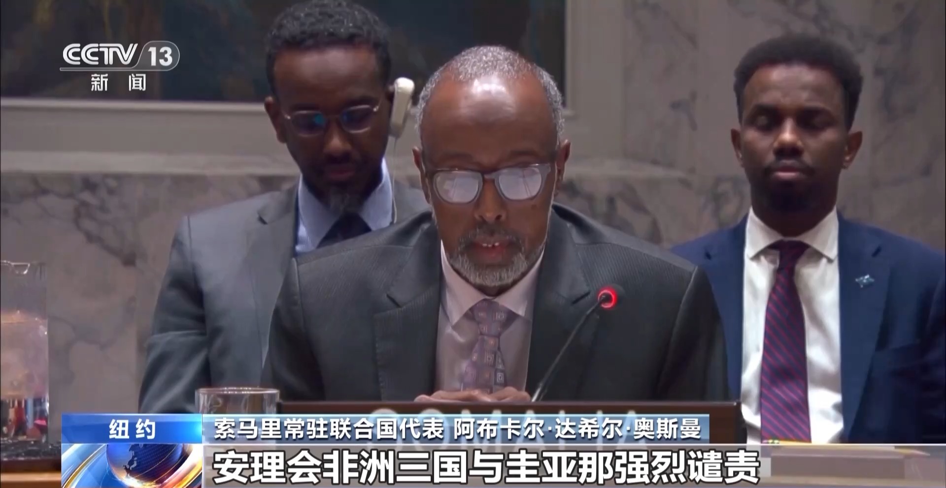 索马里常驻联合国代表阿布卡尔·达希尔·奥斯曼:安理会非洲三国与圭亚那强烈谴责以色列通过承认索马里西北部所谓的“索马里兰”为独立实体,这是对索马里的统一和领土完整发动的公然攻击。